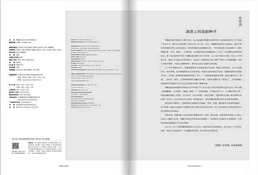 全年一共6期,雙月刊,單期164頁,彩色銅版紙。出版單位:西藏自治區(qū)文學藝術(shù)界聯(lián)合會
